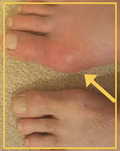 Um dos primeiros sintomas da Gota é um inchaço na articulação do dedão do pé, que geralmente dói muito. A primeira aparição pode durar de três a dez dias e depois volta ao normal, o que faz com que a pessoa não procure ajuda médica.